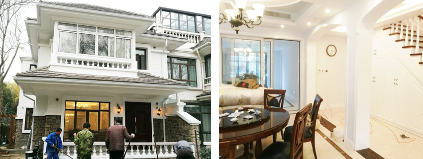 装修完毕立即准备入住,室外绿化还在施工中,客户出于安全考虑决定先让绿叶草治理后再入住。